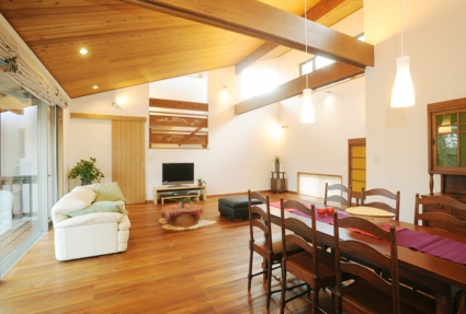 1Fは全て床暖房。 地元の施工会社の方の提案で、テレコンを導入。 東京を出発する前にスイッチを入れ、到着した時には 部屋が暖まっているので、冬でも快適に利用されています。